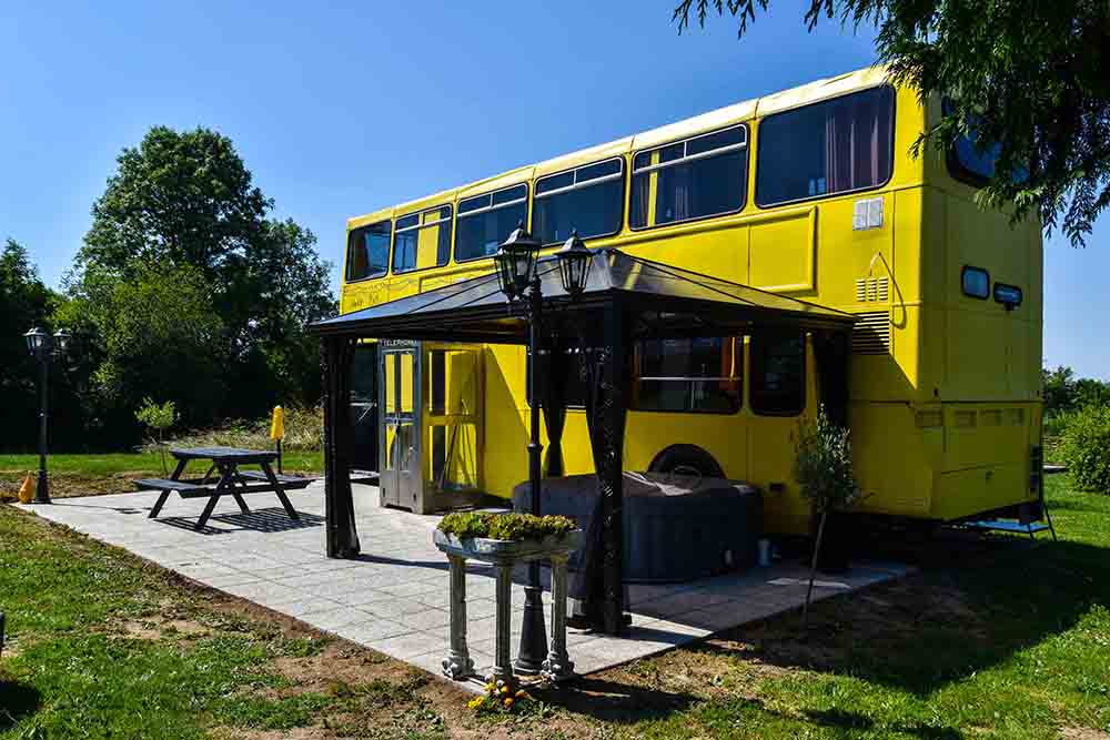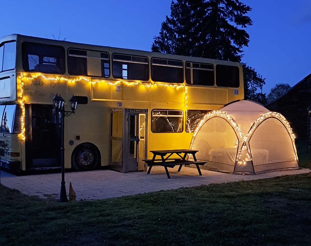Ding the bell as you jump on this beautifully converted and magically quirky double-decker bus. Pour yourself a nice cool glass of complimentary wine while the kids climb into the driver’s seat and channel their inner bus driver. Lounge in the sitting area or explore the garden. Then, as the sun goes down and your holiday begins in earnest, mount the original staircase to the top deck, where you'll find three bedrooms with super comfy beds (or so our guests tell us) to sleep six people.
